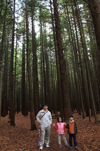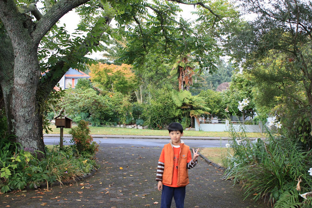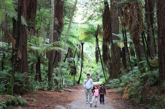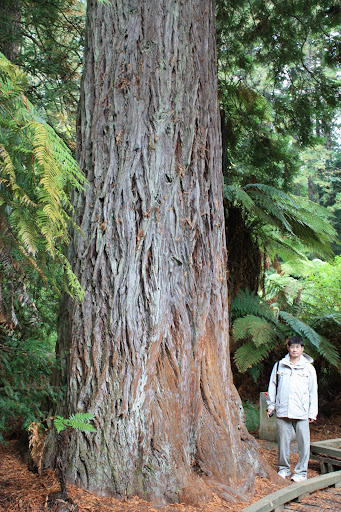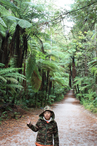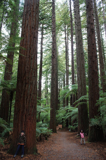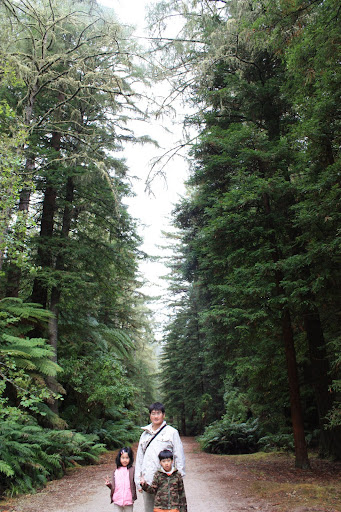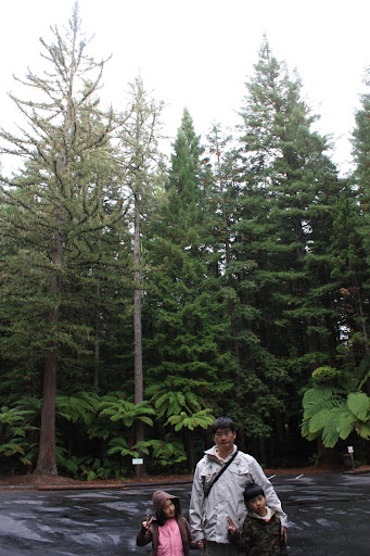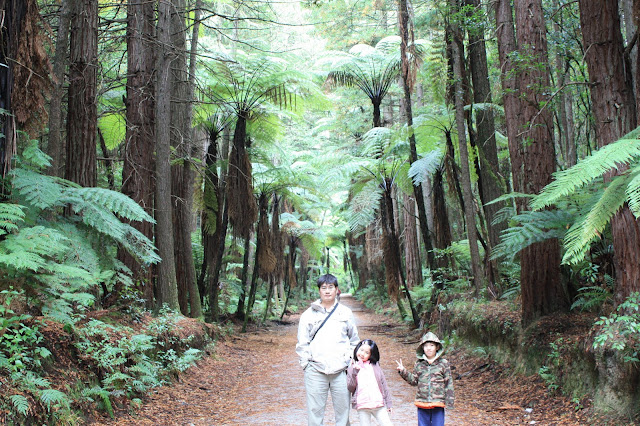 Leonie說彩虹農場裡面因為很多樹蔭,所以如果雨勢不是很大的話,她覺得影響不大,湖邊散步就真的需要老天爺幫忙了,因為天氣不好的話,湖水的顏色也不漂亮。她給了我另外兩個建議,一個就是去泡溫泉,她說溫泉設備還有滑水道,很適合全家去,而且水溫很熱,即使雨天也不會覺得冷。不過這點我倒是抱持保留的態度,因為我發現他們紐西蘭人不太怕冷,她所謂不冷的標準可能跟我的不冷有一段落差。但她還是去準備了泡溫泉用的大浴巾和大雨傘給我帶著,以備不時之需。另一個建議是去走森林步道-The Redwood,昨天我就注意到這個住宅區旁邊有一大片森林,Leonie說步道走起來很舒服,而且若雨勢不大的話,樹蔭可以擋雨,倒不失為一個下雨天的好選擇。