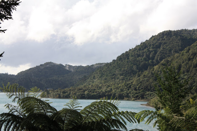 我迫不急待告訴她,今天在瞭望台上看到的火山湖,但卻找不到路可以前往。沒想到她回答我,Lake Tarawera週邊的確沒有開發任何的道路,想到那裡只有兩個方式:一是坐船,二是搭直昇機。她告訴我,很多有錢人會搭直昇機到湖的對岸,由於火山地熱的關係,那裡有天然的熱湖水可以泡湯。我告訴她,我知道北島Coromandel半島有個hot beach,只要拿鏟子在沙灘上挖個洞,就有熱海水可以泡,但沒聽過有熱的湖水可以泡的。她得意地告訴我,hot beach根本沒什麼了不起,不僅遊客很多,而且還要自己挖洞,還要算好時間配合退潮;相對地,因為交通不便,Lake Tarawera極少遊客造訪,一邊泡在湖水裡,一邊欣賞美景,Coromandel根本不能比。她還說,如果我們想去,她可以打電話去幫我訂船班。