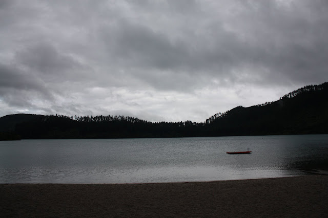 湖景跟天氣有絕對的關係,雖然雨已經停了,可是天氣仍陰陰的,湖水的顏色看起來是暗綠色的,加上氣溫有點低,我們在湖邊待了一下就想上車了。