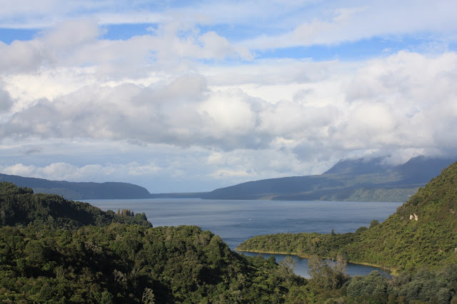 最後我們驅車來到一個觀景台,這裡視野非常好,可以看得很遠,就在這裡,我們注意到遠方有個火山湖(Lake Tarawera),但對照了一下地圖,卻沒有看到任何可以通往湖邊的道路。