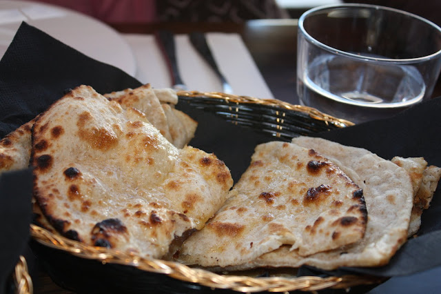 晚餐我們去吃一家印度菜,Rotorua果然餐廳的選擇較多,口味也稍具水準。沒想到生平第一次吃印度菜會是在紐西蘭,本來就不太曉得該如何點菜,加上英文的menu,我們研究了好久才決定要點什麼?常在電視上看到介紹印度人吃的烤餅,於是我們卯起來點了各種口味的餅,另外再加上一些傳統印度口味的菜餚,配著餅吃,還蠻好吃的。除了辣味的以外,昕融和昕庭也吃得津津有味。